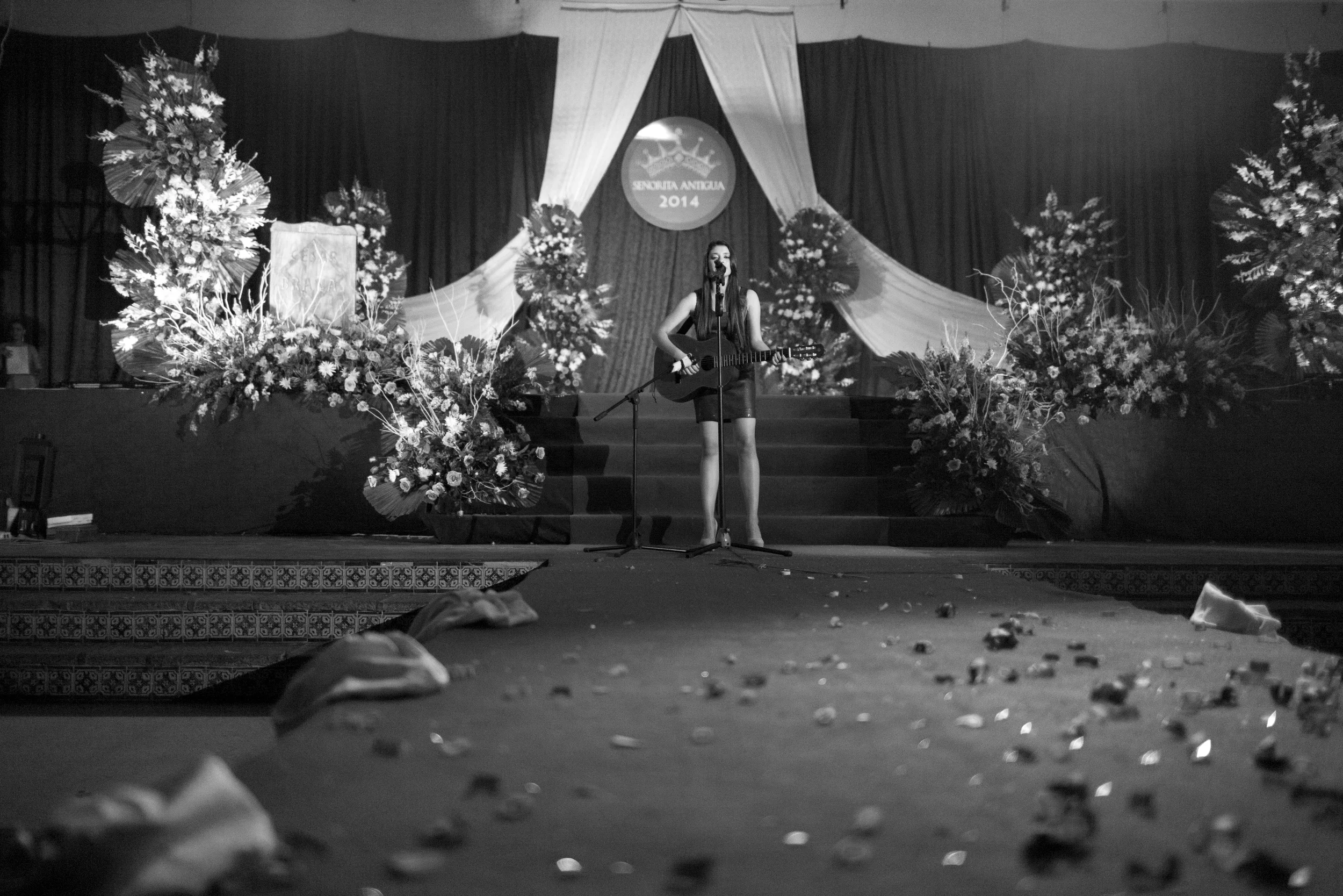 Local dancers and musicians performed during an outfit change at the 2014 Miss Antigua beauty pageant. The winner will compete in the Miss Guatemala beauty pageant. Antigua, Guatemala.