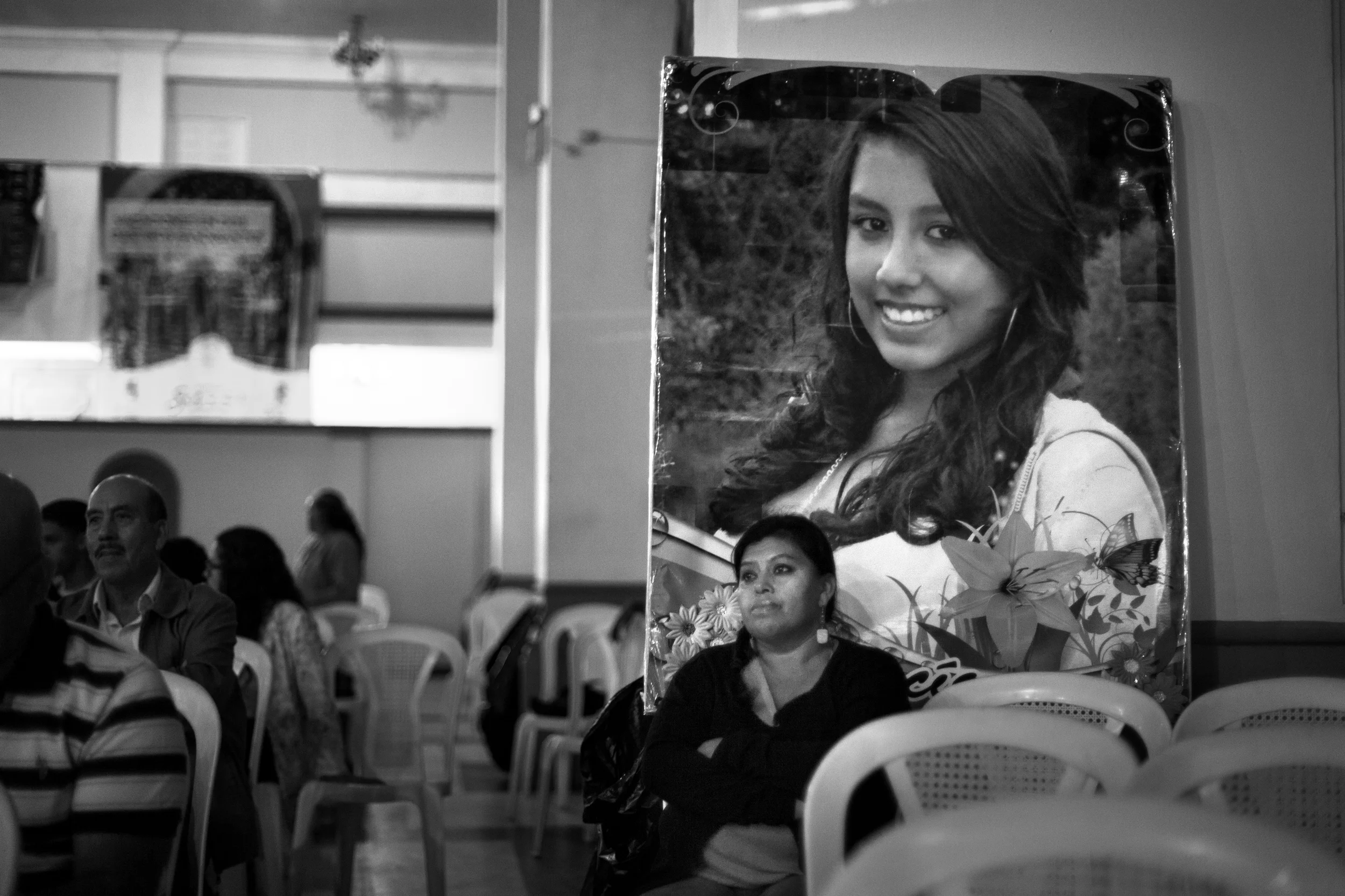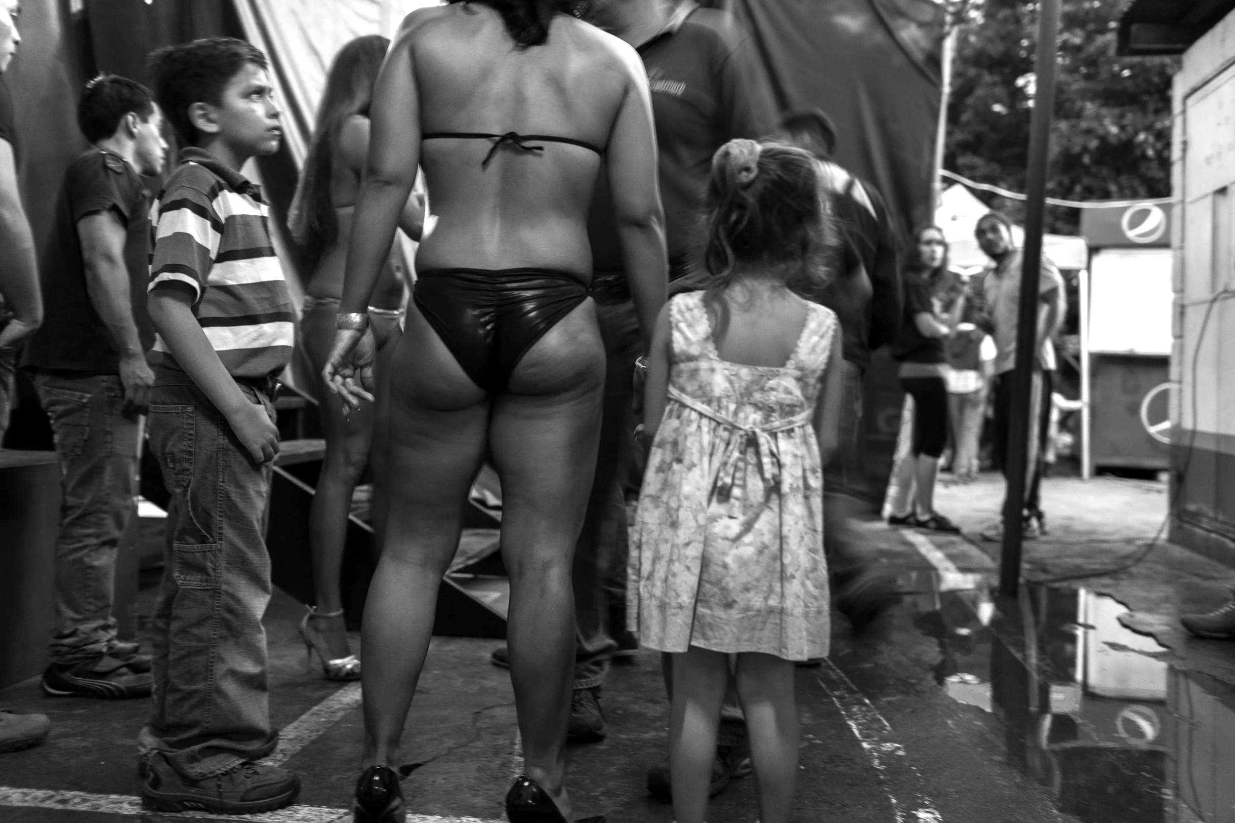 A female bodybuilder and her family backstage at the Gimnasio La Fábrica bodybuilding contest in Antigua, Guatemala.