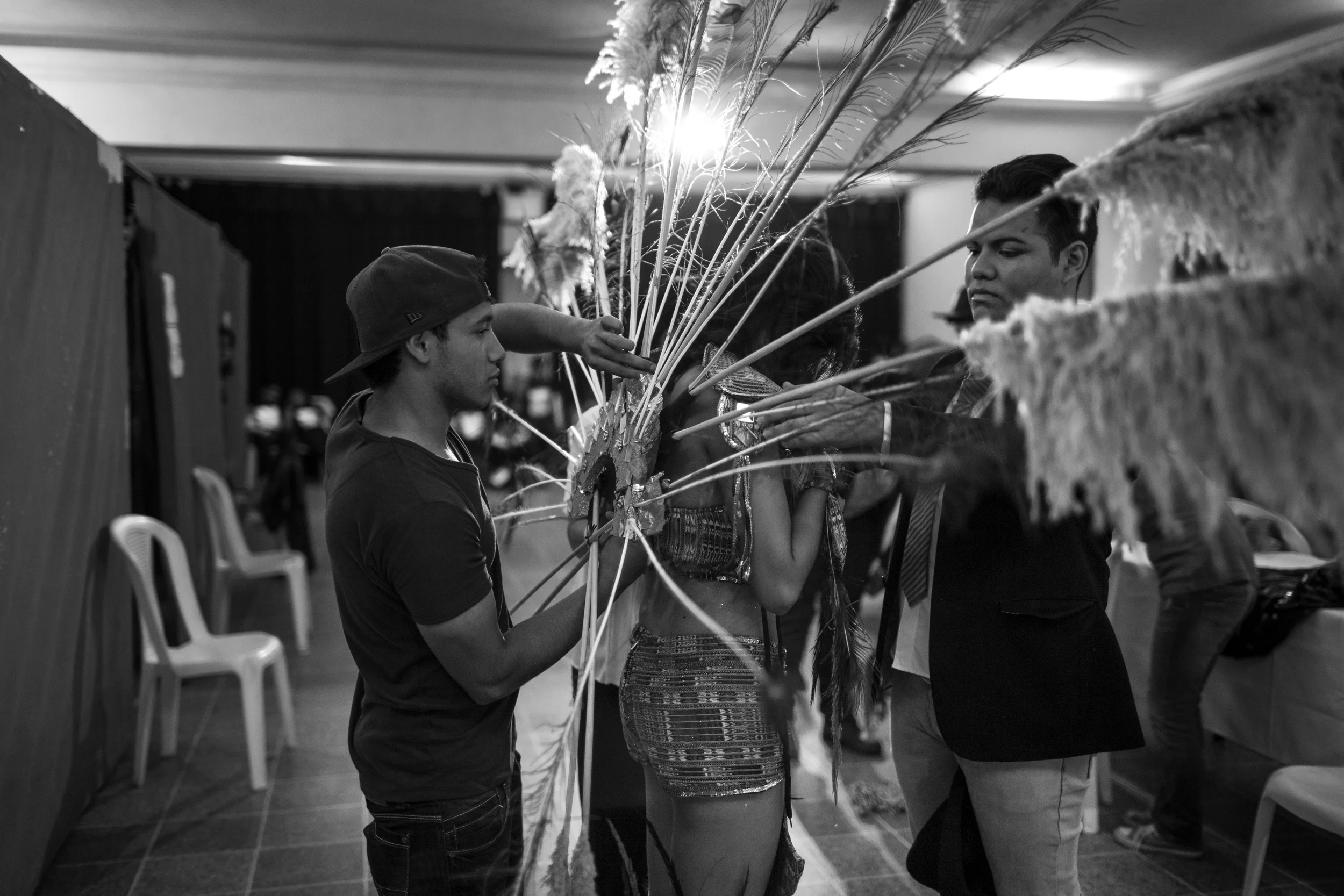 Patricia Vela prepares her outfit for the fantasy portion of the 2014 Miss Antigua beauty pageant. The winner will compete in the Miss Guatemala beauty pageant. Antigua, Guatemala.