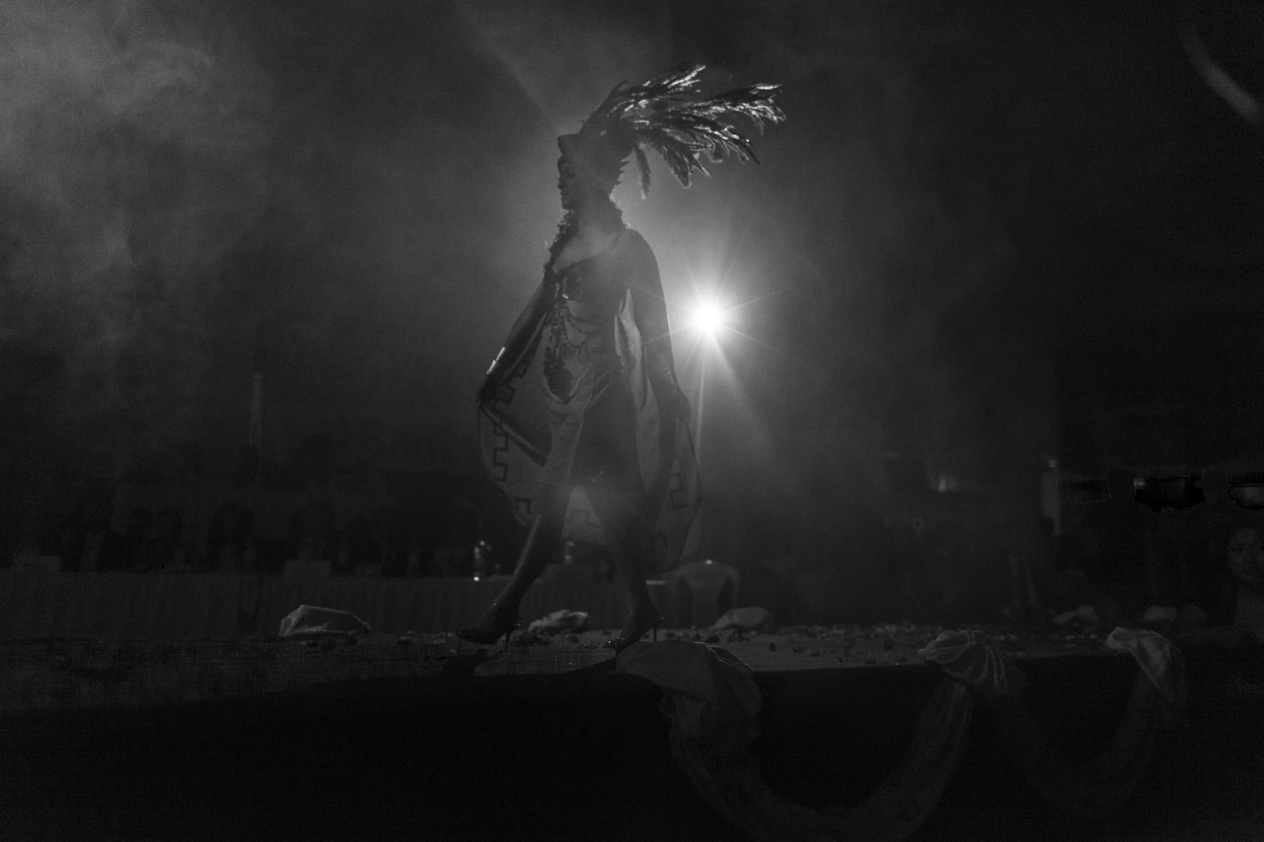 A cellphone is used for light during a brief power outage just before the start of the 2014 Miss Antigua beauty pageant. The winner will compete in the Miss Guatemala beauty pageant. Antigua, Guatemala.