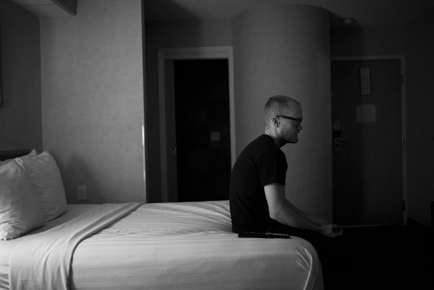 1AM—Tour is a repetitive cycle of long drives, sound check, perform, a few hours of sleep, and repeat. Adam watching a few minutes of TV in his hotel room late at night.