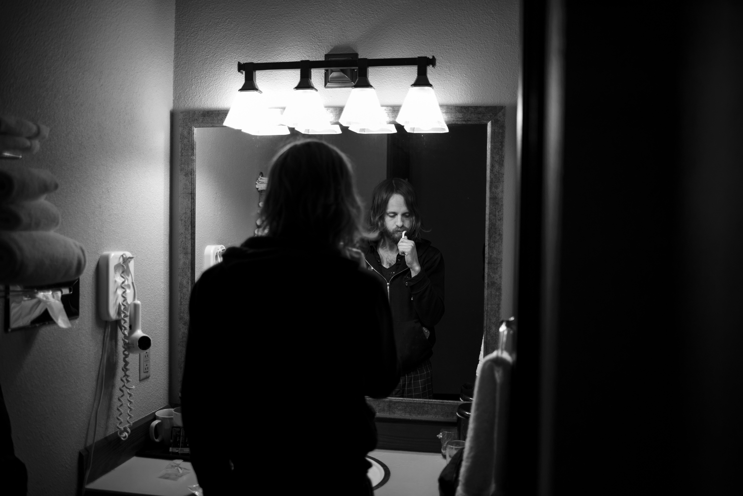 7PM—Tyson walks from the venue to the hotel a few blocks away to grab a shower and a few minutes alone before returning to the venue for their show. A month on the road, sharing hotel rooms means almost no time to yourself. You steal a few minutes whenever you can to help keep your sanity.