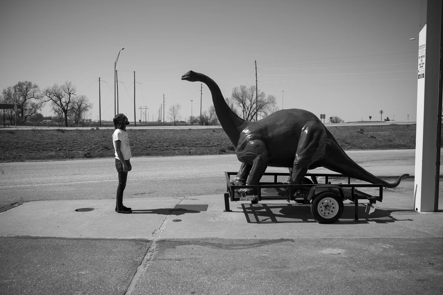 2:45PM— One of many gas stations visited on tour. The only dinosaur visited.
