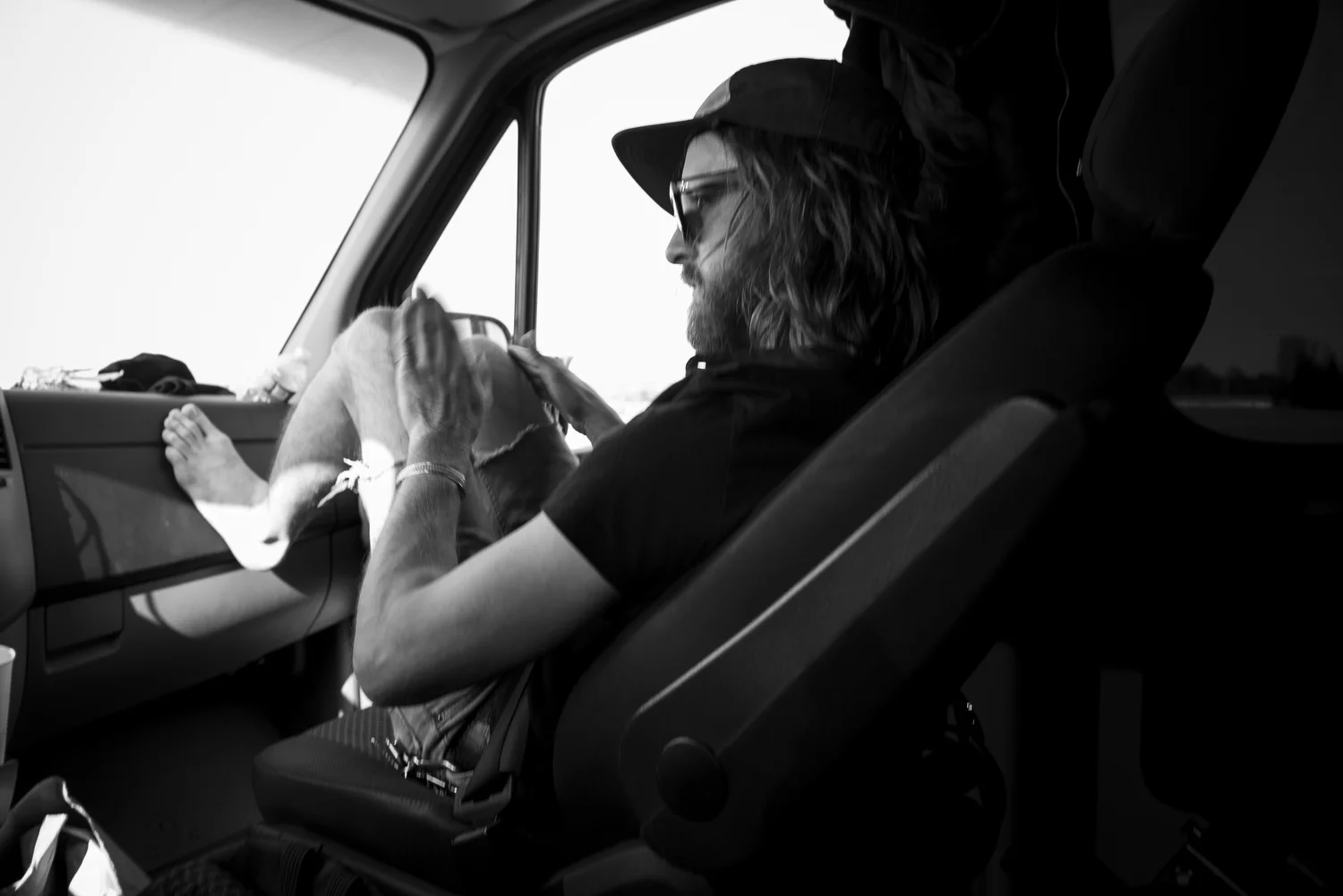 6pm— Late for soundcheck. There were 5 people in the van including myself and long drives meant a constant game of musical chairs as people shuffled between driver, co-pilot, and sleeping in the back.