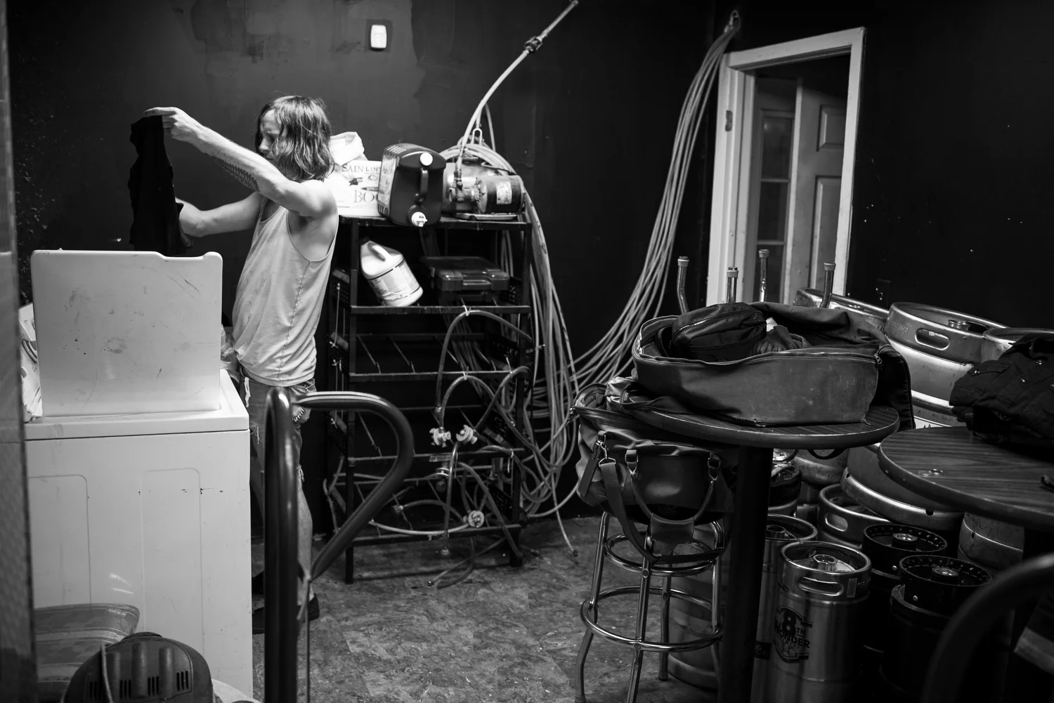 10:30PM—The first show of tour. With so little free time in the hotels, back stage rooms start to feel like second homes. Some sympathetic venues provide washing machines, showers, and other small comforts for touring bands.