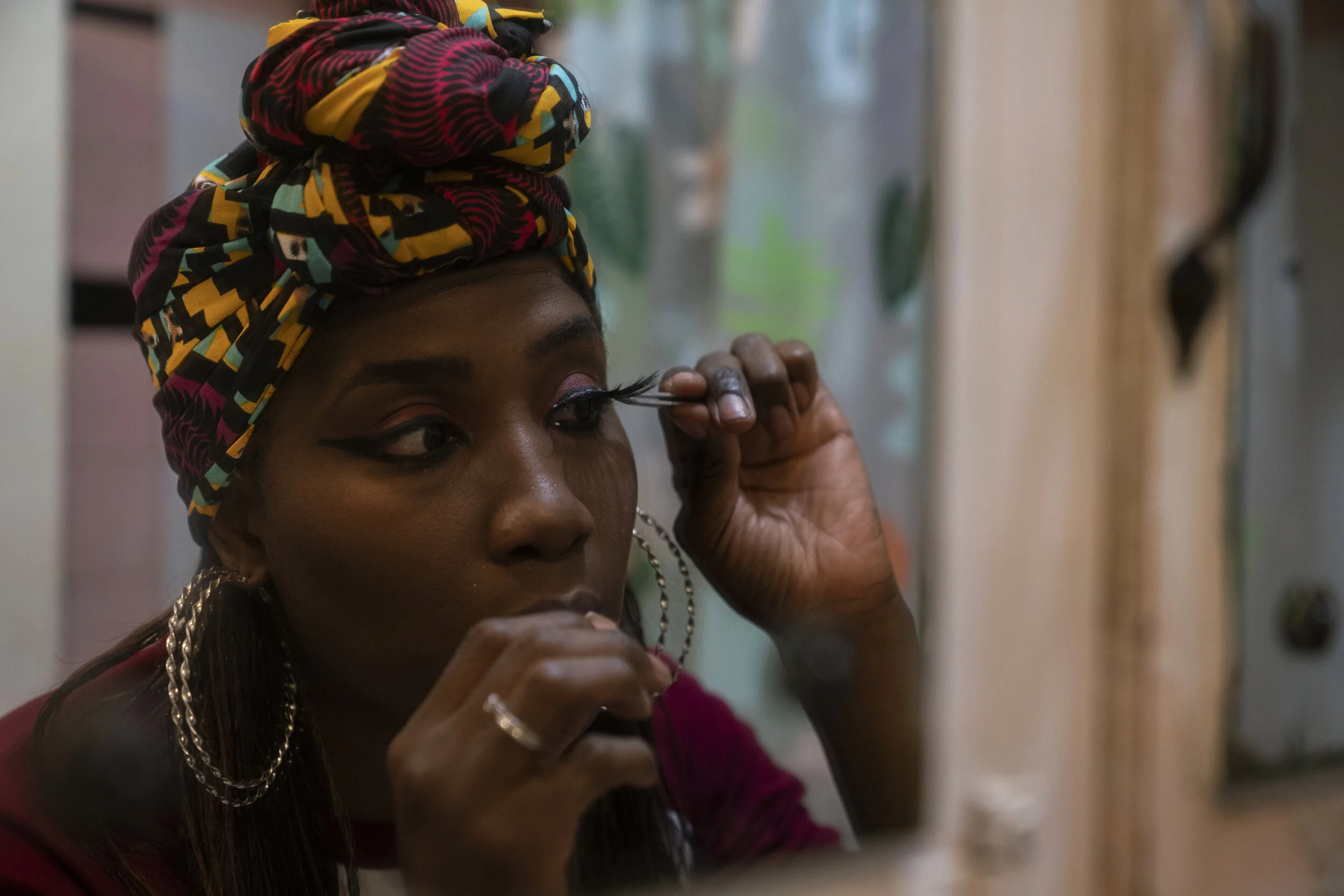 Serenity puts makeup on before meeting friends. It was one of the first times she’d gone out since she was shot in 2003.