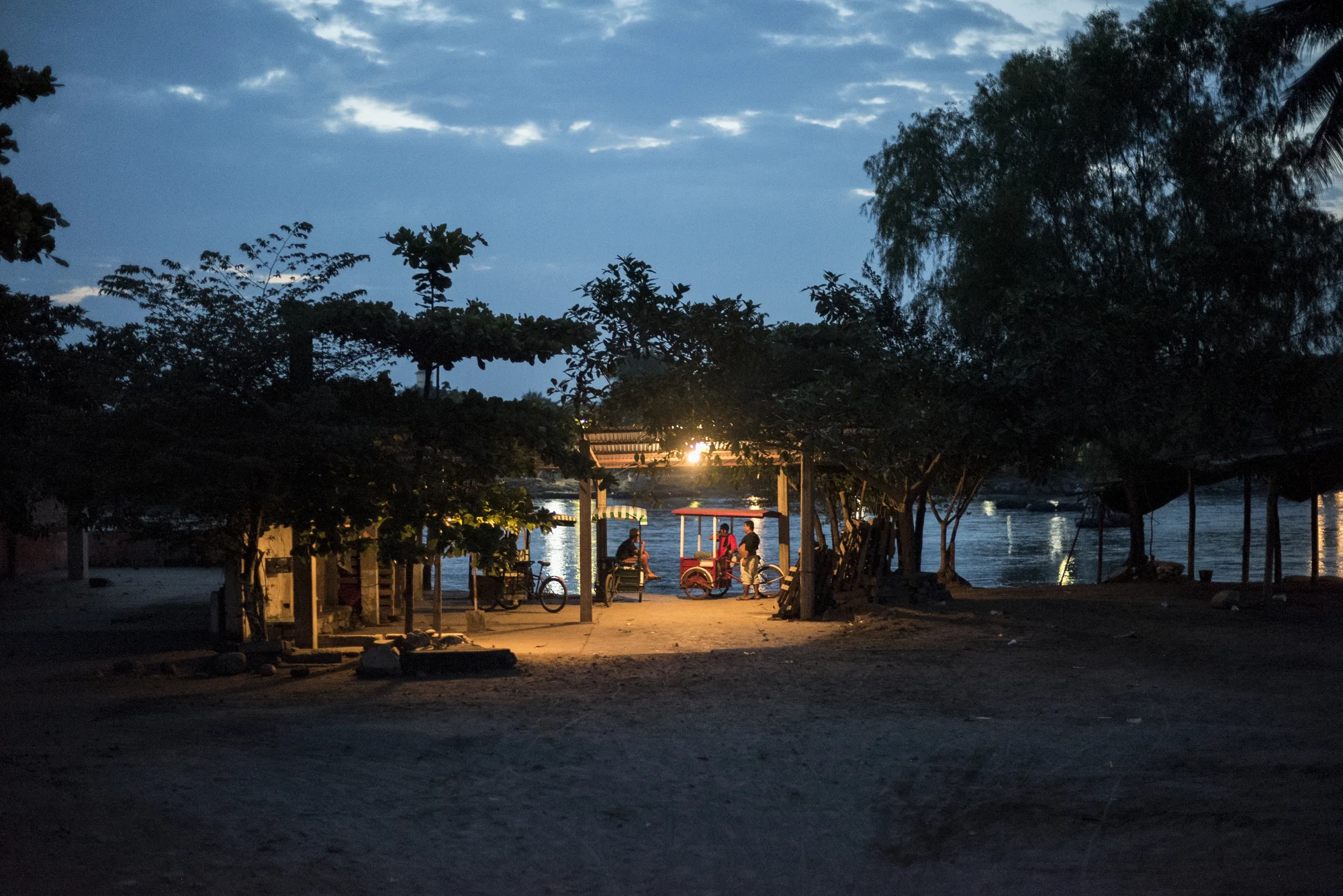 Bike taxi drivers wait for migrants on the banks of the Suchiate River in the early morning hours of October 15, 2015.