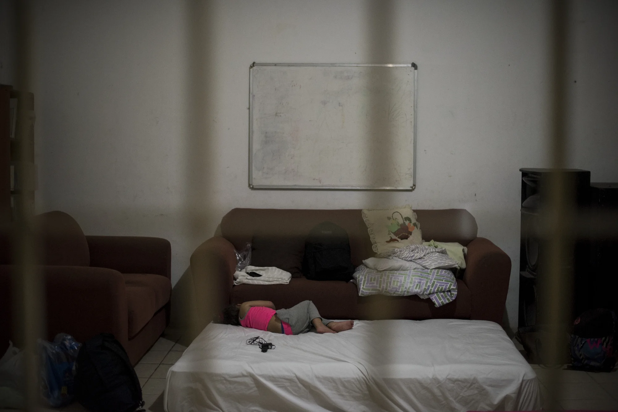 Sandra Maylin Santi's four year old daughter, Julietta, in the shelter where she and her family will sleep before leaving in the morning to cross Mexico on the last and most dangerous leg of their journey to the United States.