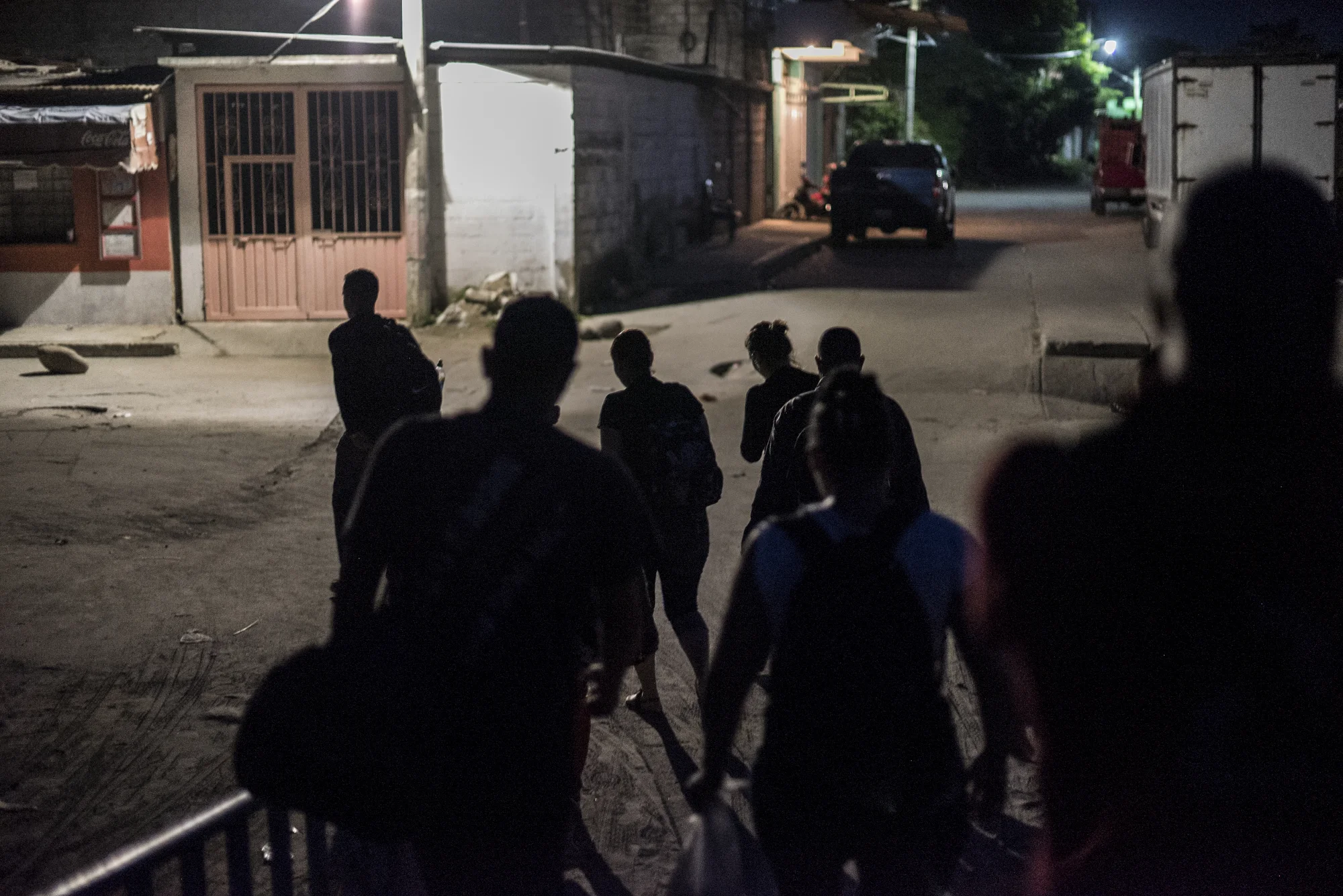 Cuban refugees, who just crossed the Suchiate River into Mexico from Guatemala, head into Ciudad Hidalgo to get a bus to nearby Tapachula in the early morning hours of October 15, 2015.