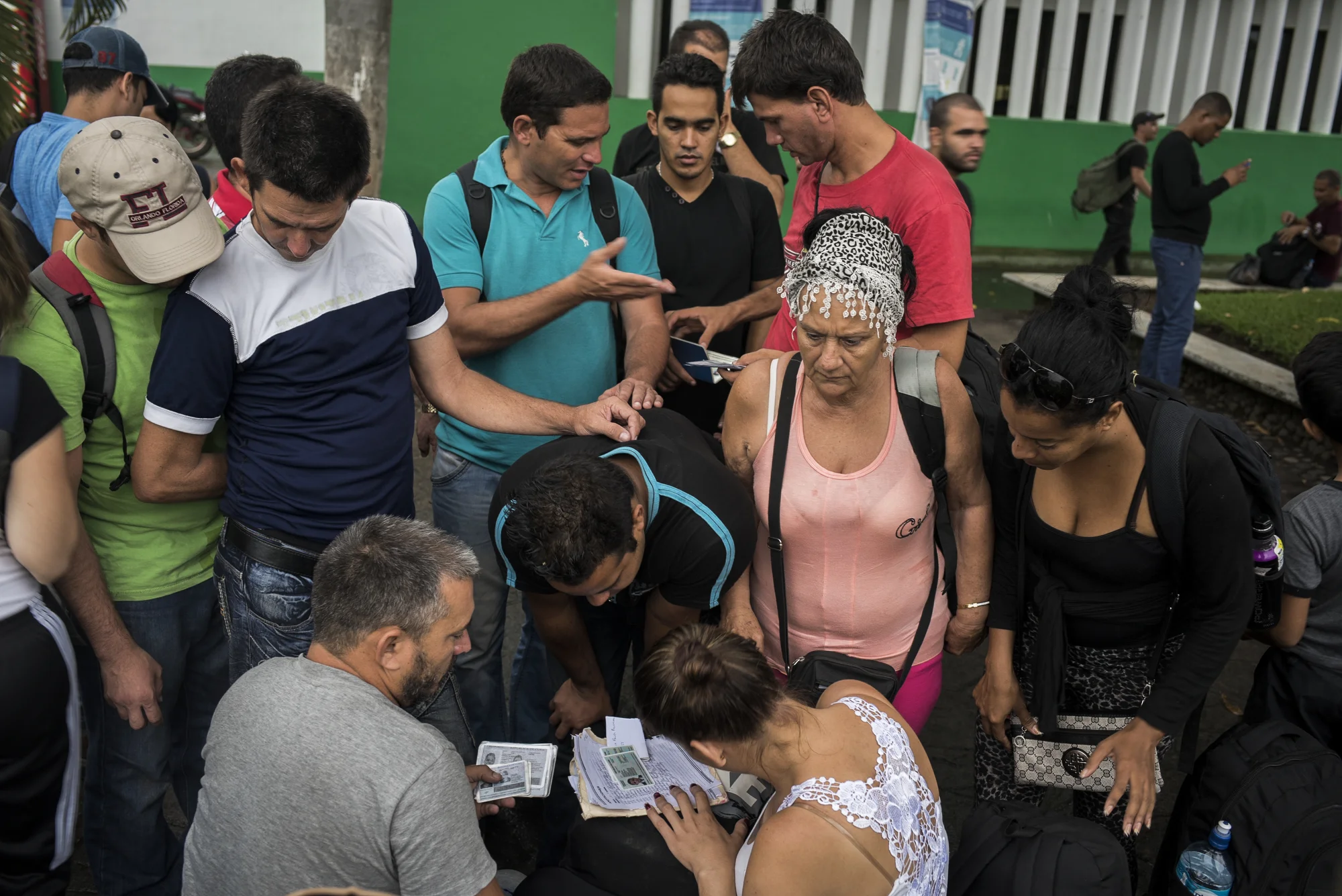 Cuban refugees put their names on a list to be processed for a Mexican exit visa along with roughly 200 others who arrived that day outside the Mexican migration office in Tapachula, Mexico. The migration office has been overwhelmed in the past couple of weeks by a surge of Cubans all making their way through Mexico to the United States.